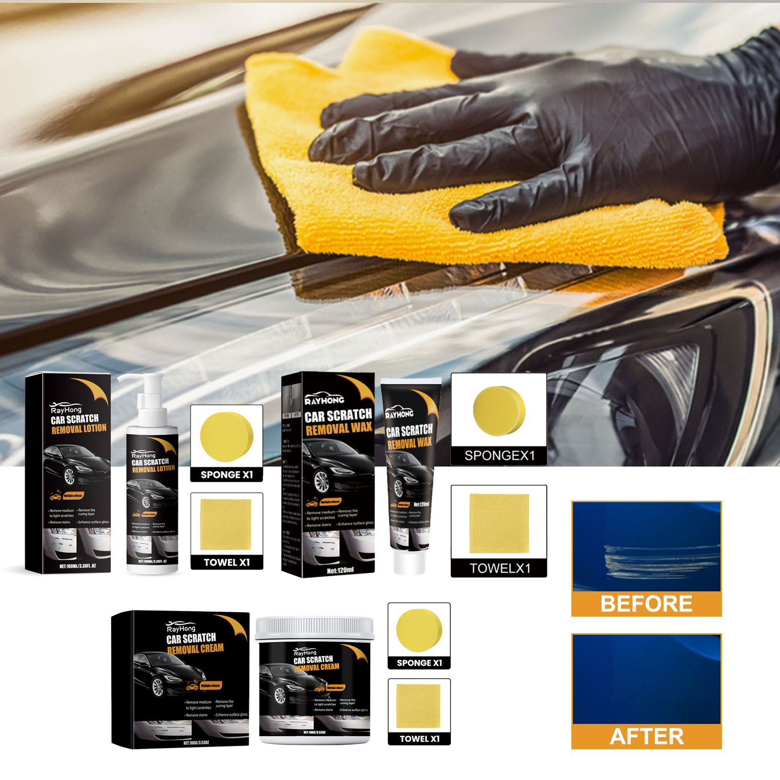 RAYHONG 汽车划痕乳液 汽车漆面刮擦抛光保养翻新清洁增亮修护液