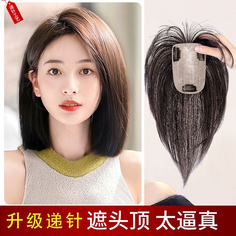 轻薄隐形仿递针头顶假发片女盖白发全真发补发尾厂家批发