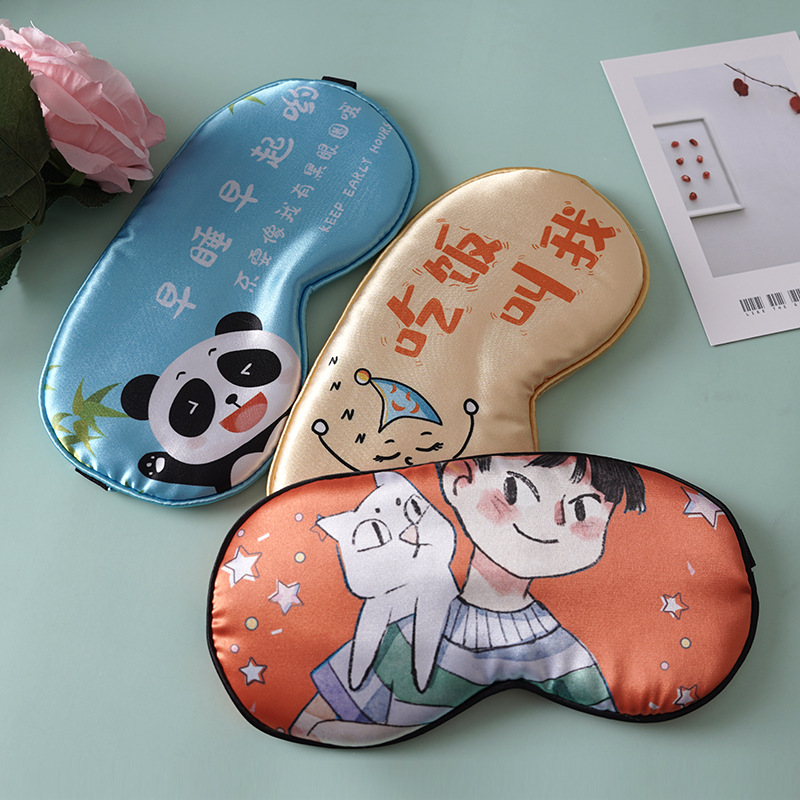 双面仿真丝睡眠眼罩午休遮光卡通旅行护眼透气缓解疲劳可定