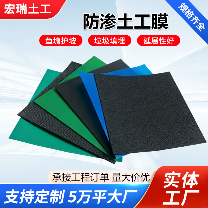土工膜防渗膜鱼塘养殖用黑膜厂家hdpe黑色蓄水池垃圾填埋场土工膜