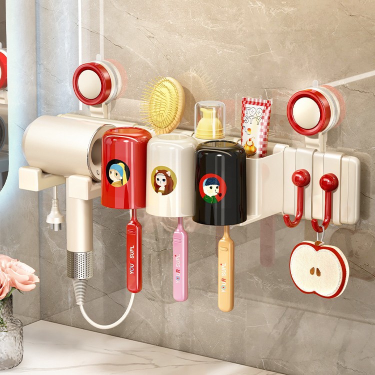 多巴胺吸盘牙刷置物架卫生间壁挂式免打孔吹风机支架洗漱杯架套装