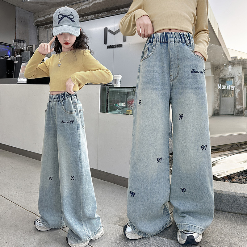 女大童牛仔裤春秋装2025新款韩版休闲阔腿裤女孩春款宽松裤子百搭
