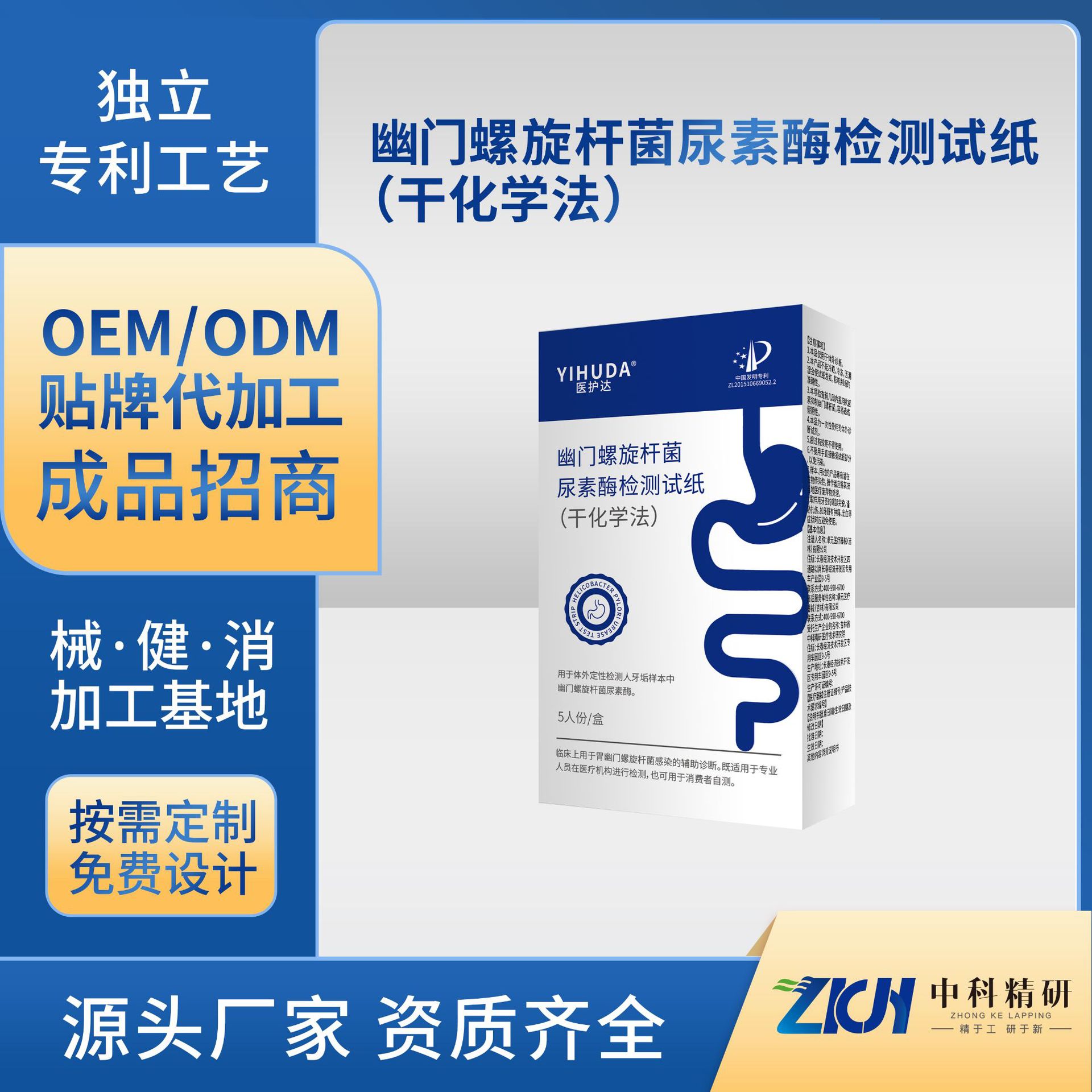 加工定制幽门螺旋杆菌尿素酶检测试纸(干化学法)医用