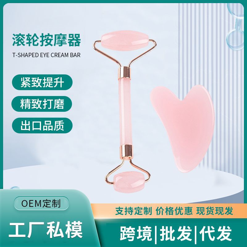 双头粉晶非玉石亚克力滚轮按摩器心形脸部刮痧板面部美容刮痧套装