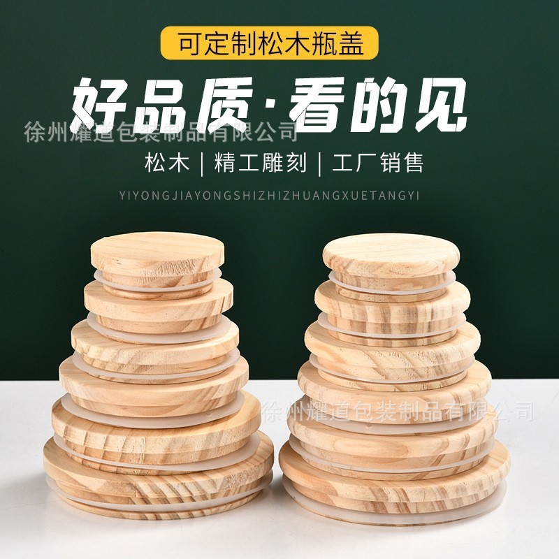 现货圆形松木盖蜡烛杯马克杯玻璃瓶密封盖防潮排气美观耐用带硅胶