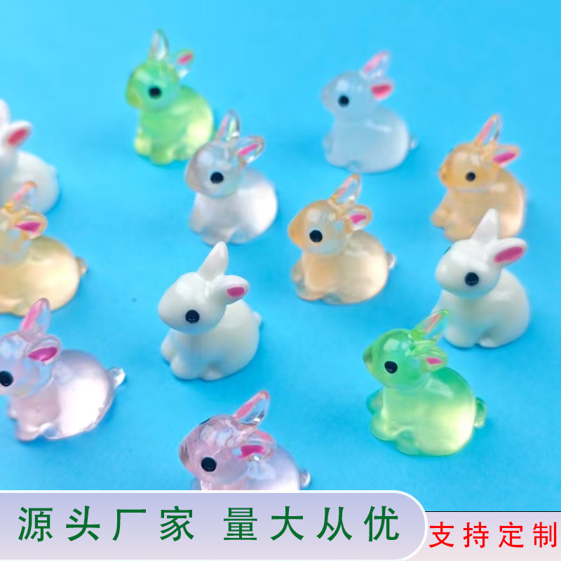 仿真立体实色夜光小兔子微缩玩具树脂小摆件手工 diy车载桌面装饰