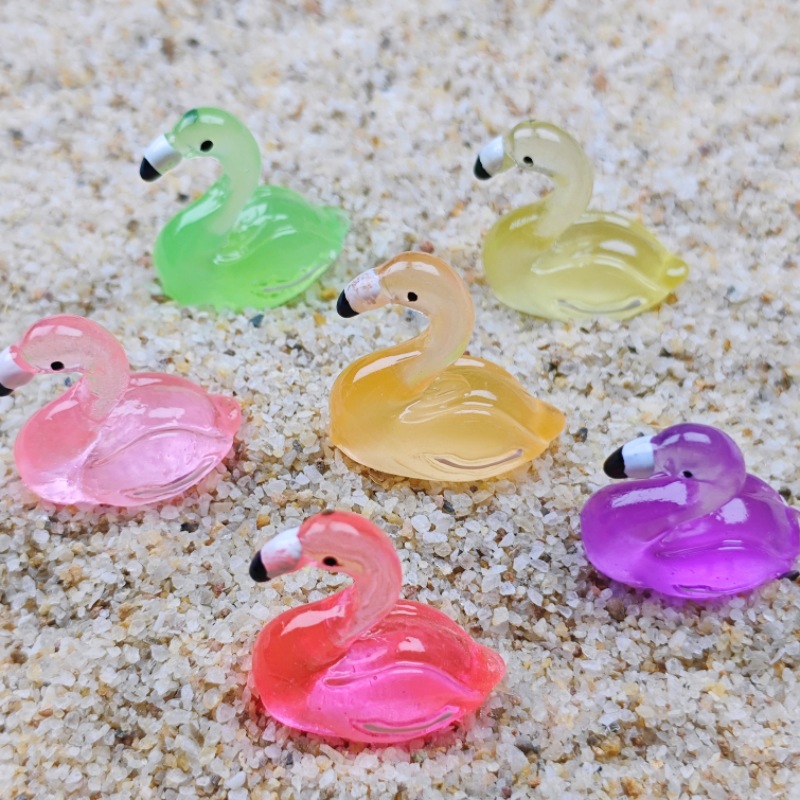 微景观创意仿真立体夜光火烈鸟水族天鹅树脂摆件苔藓造景diy装饰