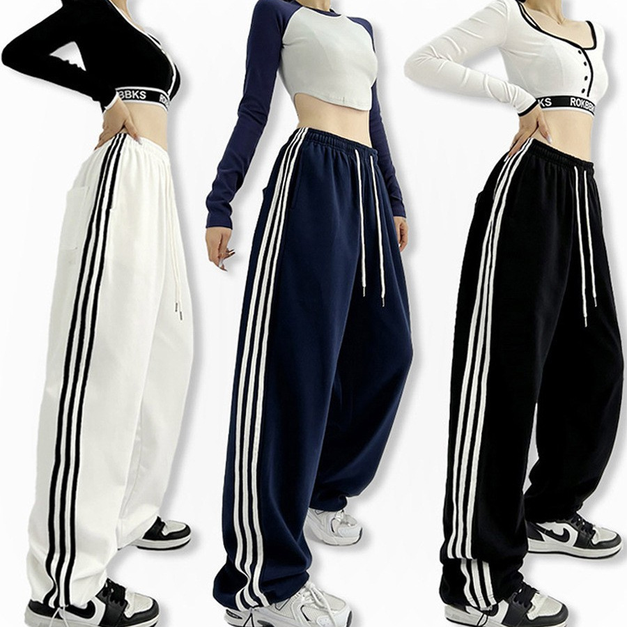 美式高街潮牌街舞三条杠休闲运动裤女爵士舞蹈嘻哈阔腿jaz宽松裤