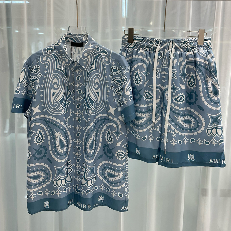 2025夏季跨境外贸数码印花男士短袖衬衫短裤套装休闲百搭休闲时尚