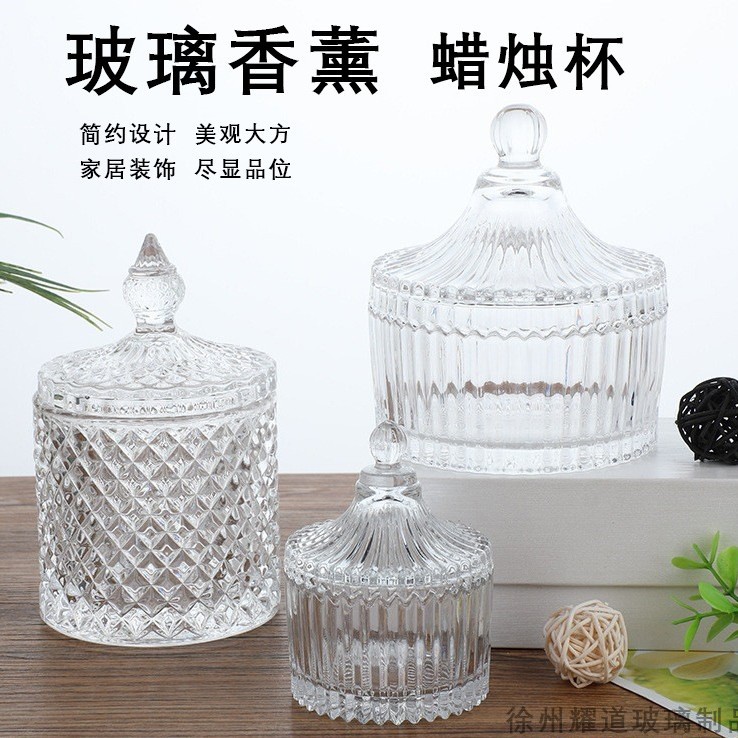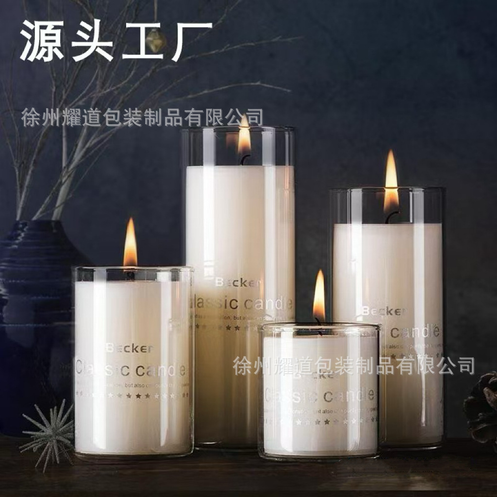 透明简约高硼硅蜡烛杯欧式烛台摆件蜡烛带盖玻璃瓶婚庆餐厅蜡圆柱
