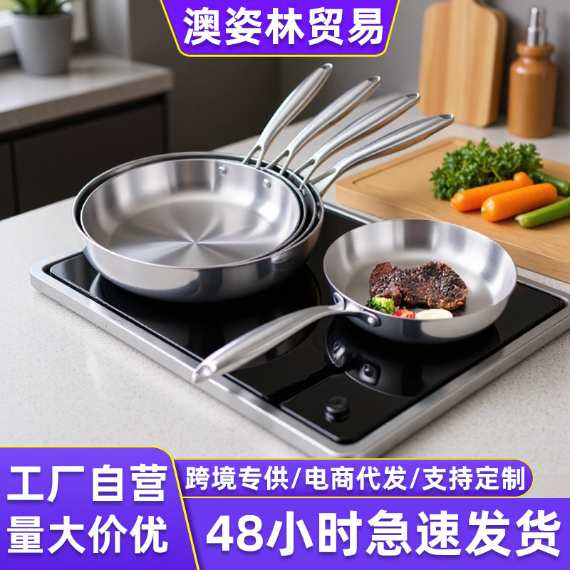 ✅煎锅无涂层牛排煎蛋锅不锈钢煎饼锅无涂层不粘锅家用煎炒锅