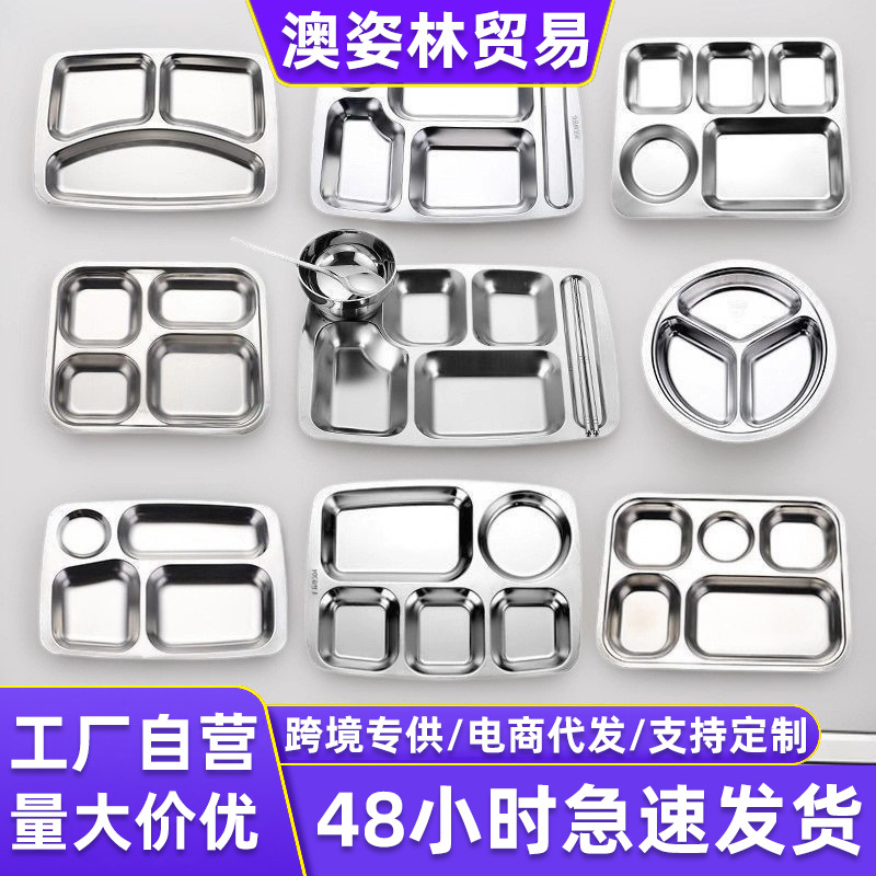 ✅跨境幼儿园餐盘不锈钢快餐盘分格儿童学生成人分隔餐盘三格食堂