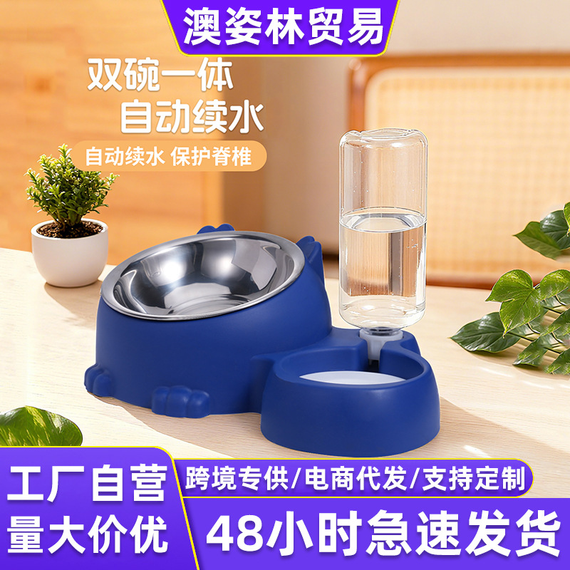 ✅跨境猫碗猫盆狗碗双碗宠物饮水猫咪碗蓝猫食盆猫粮饭盆宠物用品