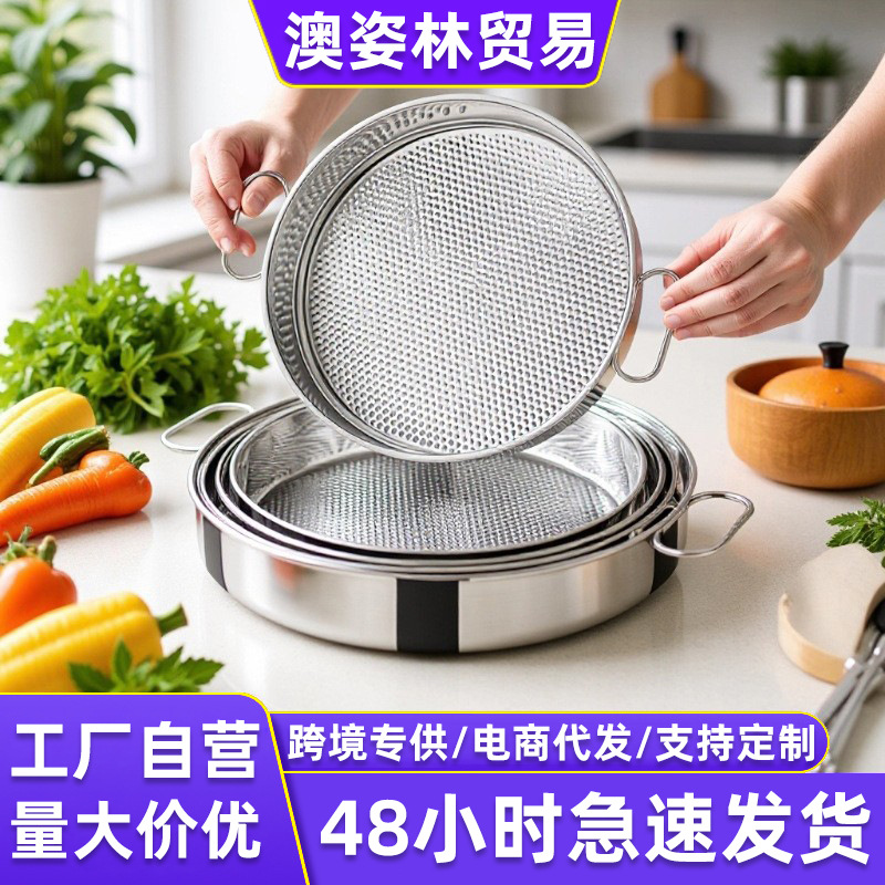 ✅跨境面粉筛子不锈钢筛子米筛粉筛芝麻筛烘培筛猫砂粉尘家用筛