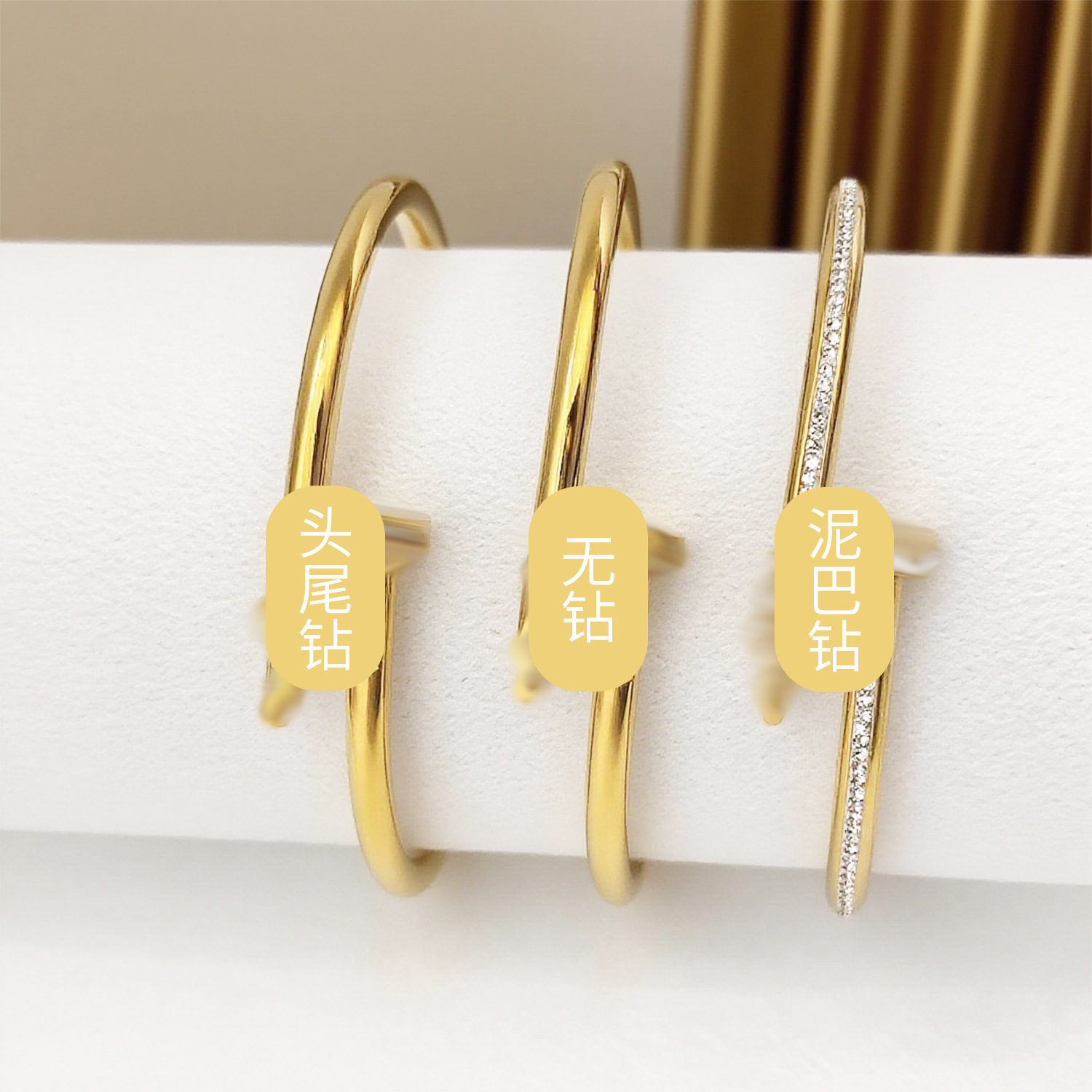 欧美跨境卡家钛钢钉子手镯不掉色饰品镶钻泥巴钻18k金手环手饰