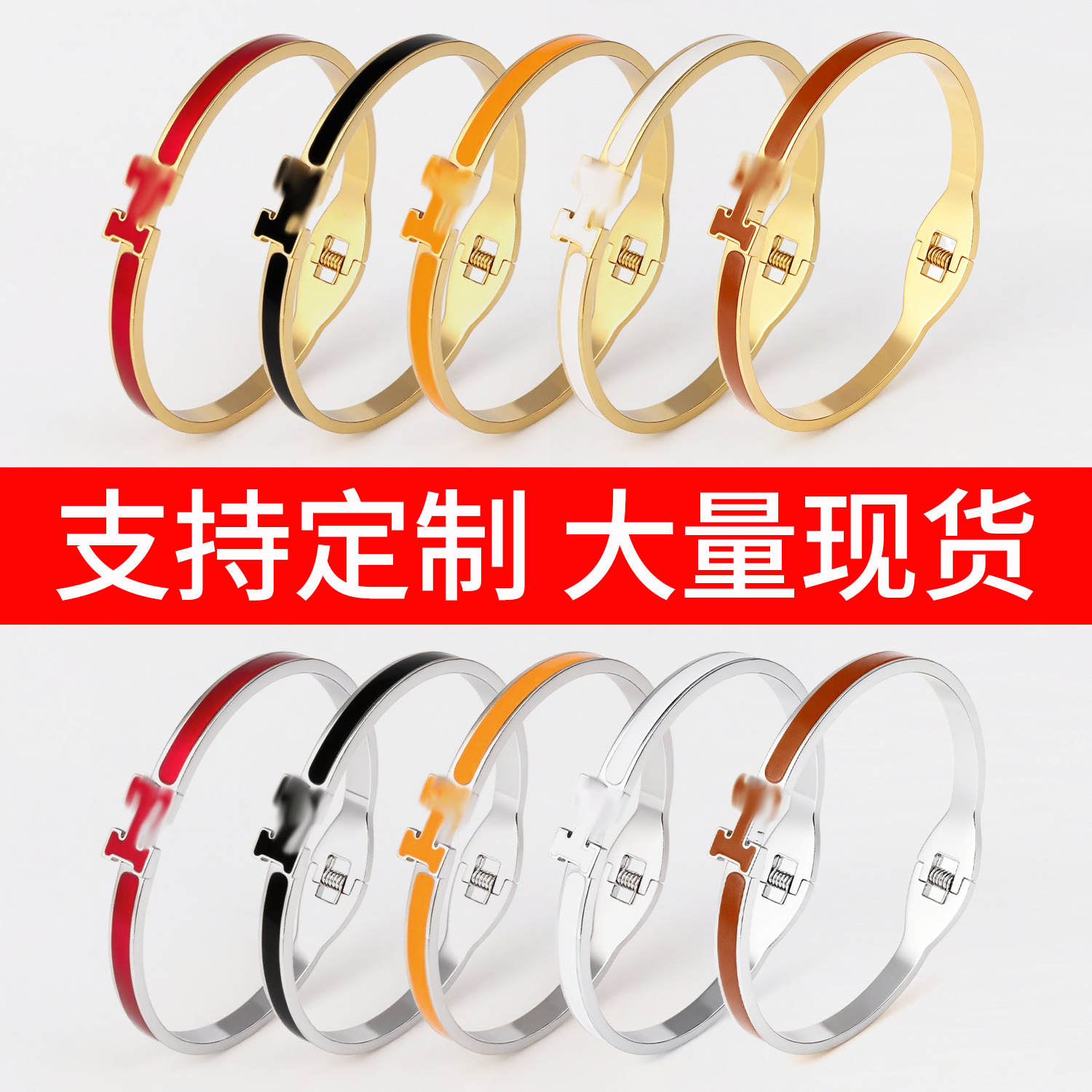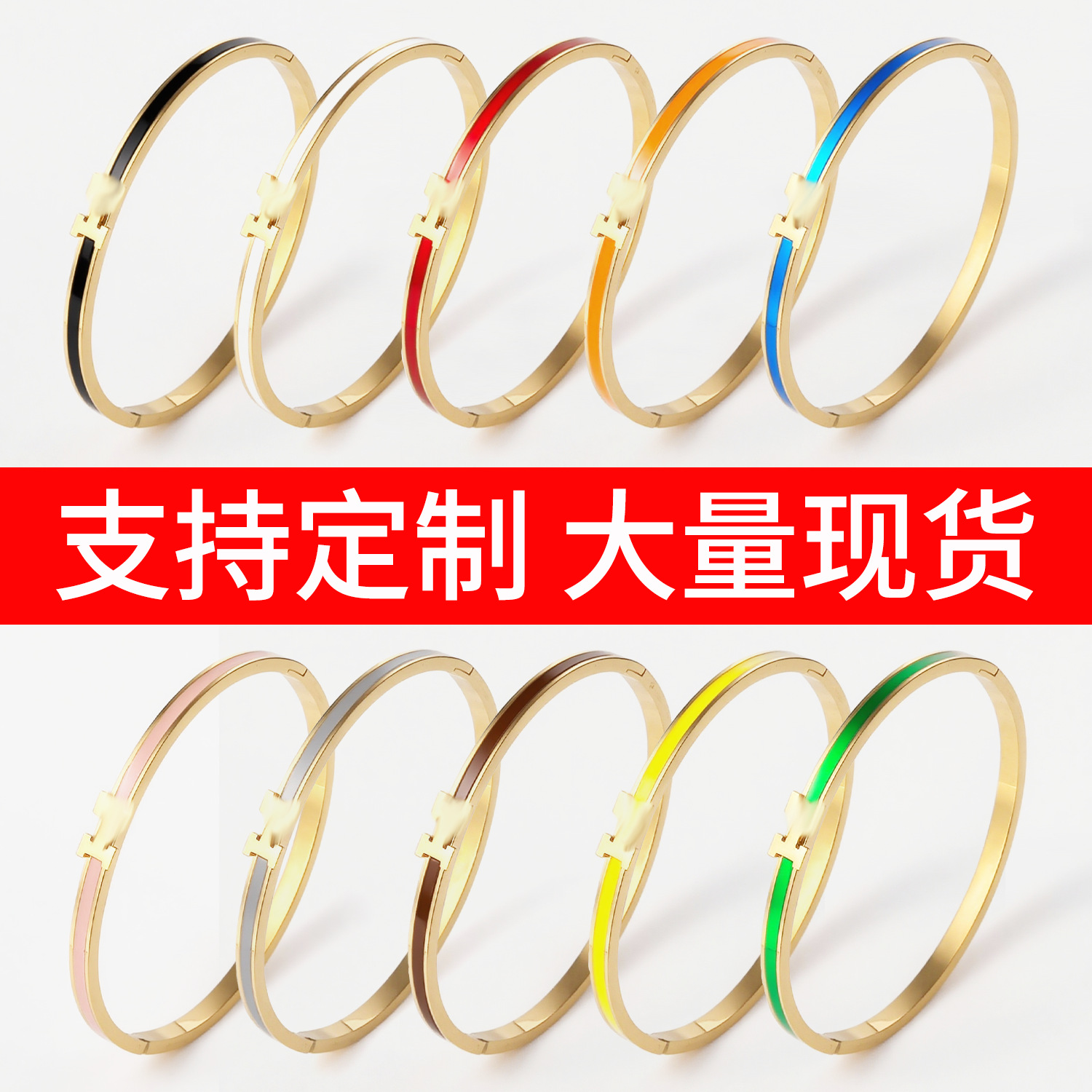 欧美跨境爱家H家h钛钢手镯窄版不掉色饰品珐琅滴油手环手饰首饰