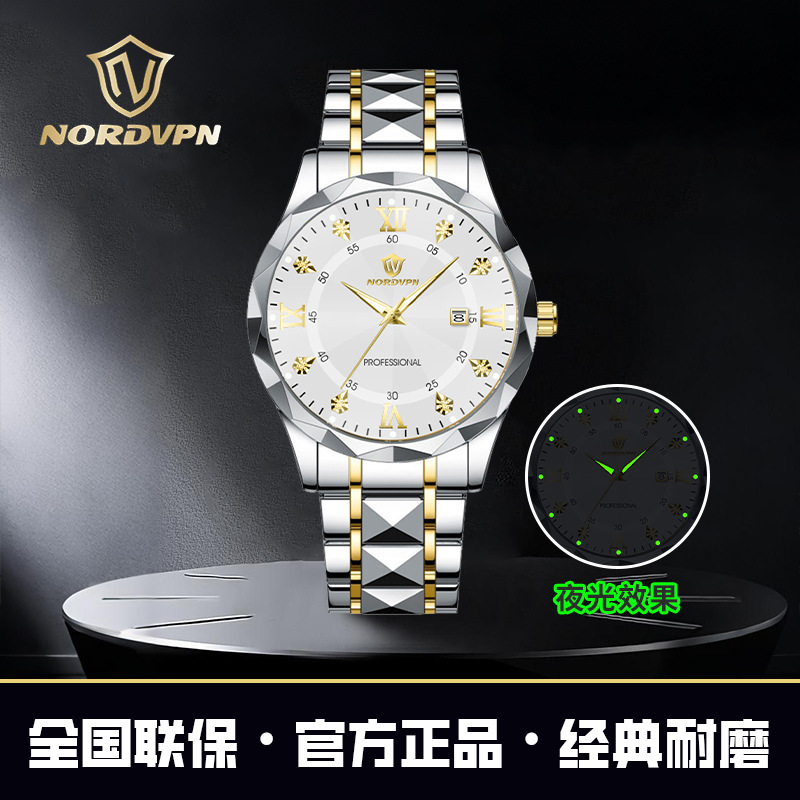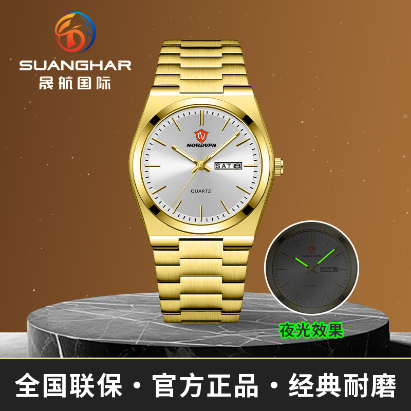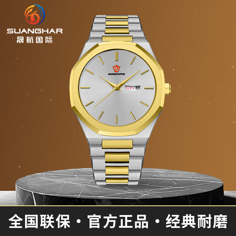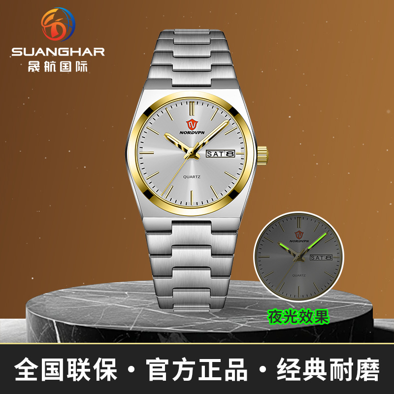 NORDVPN名匠款 防水夜光双日历奢华石英表商务学生 现货极速代发