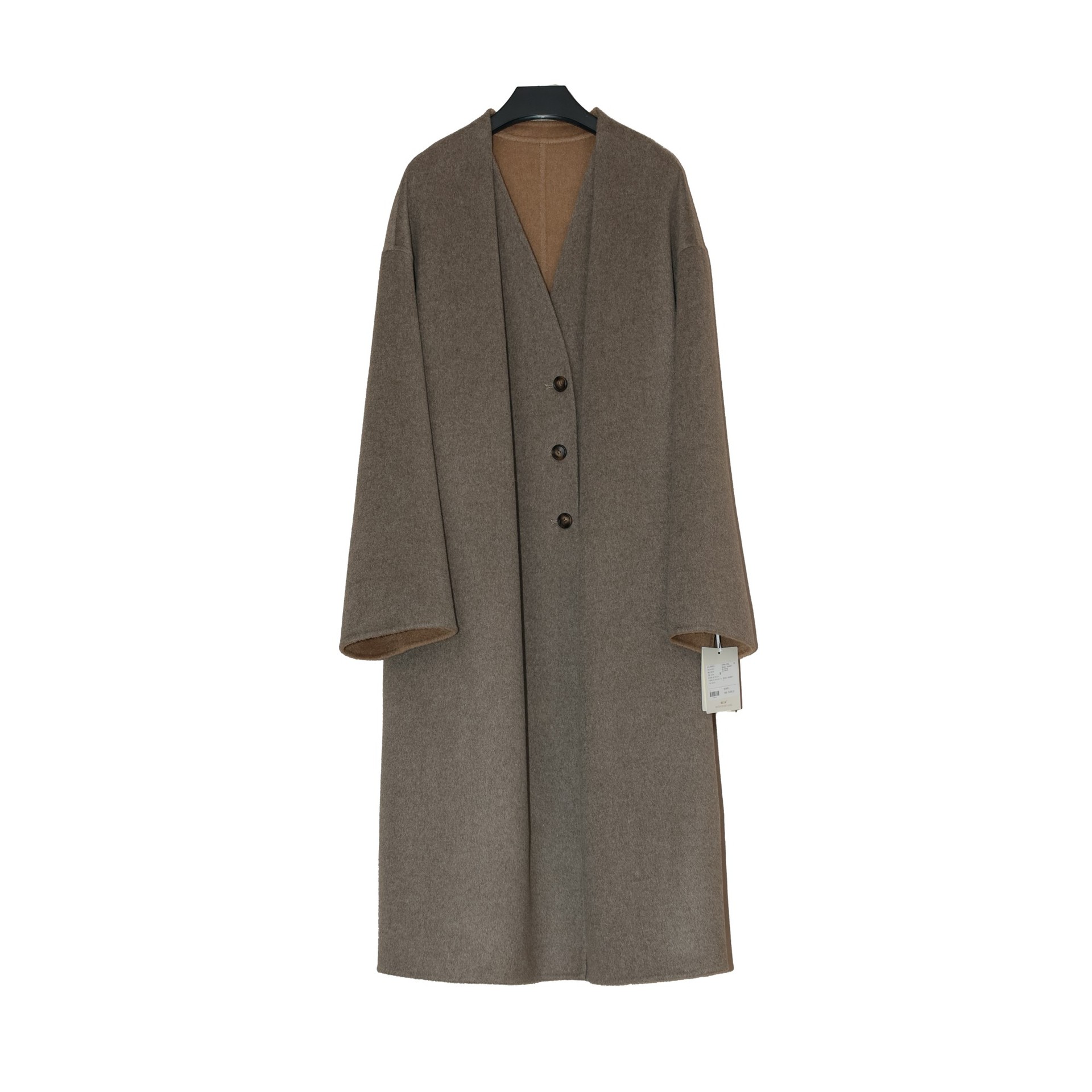 【订单】秋冬100%牦牛绒骆驼绒AB面无领V门襟女士长款羊绒大衣