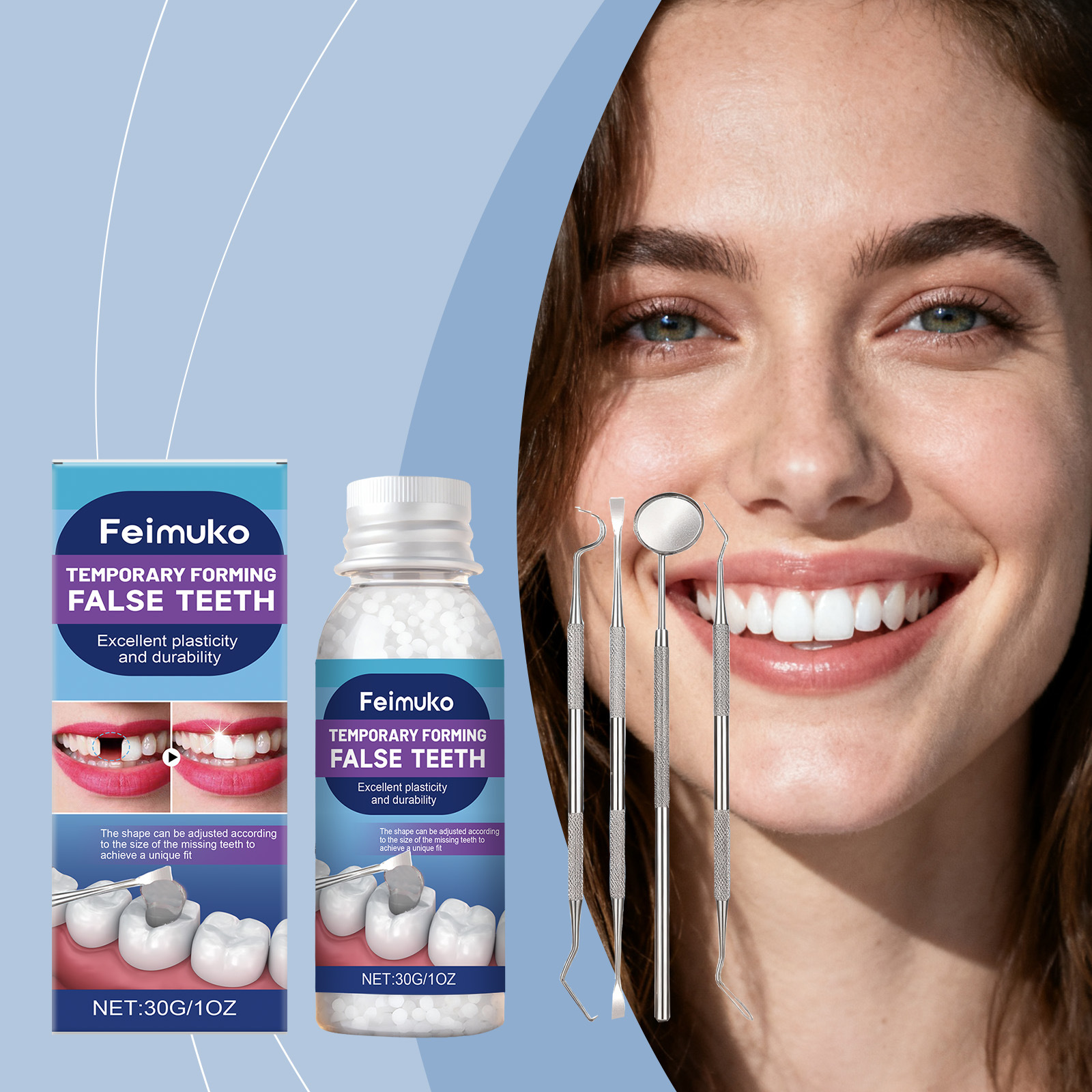 Feimuko假牙牙胶 可塑形固体牙胶塑造假牙美观牙齿便捷提升笑容