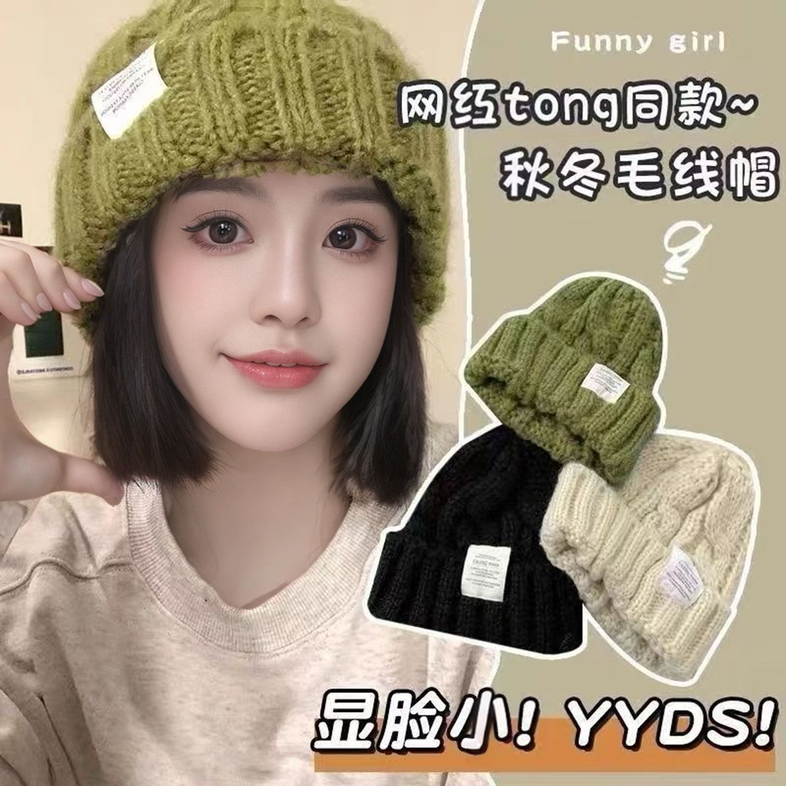 毛线帽子女秋冬韩版潮网红保暖针织帽大头围韩国时尚纯色显脸小冬