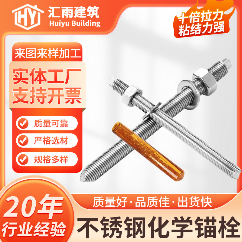 304不锈钢化学锚栓带药水锚栓国标建筑配件化学锚固膨胀螺栓螺丝