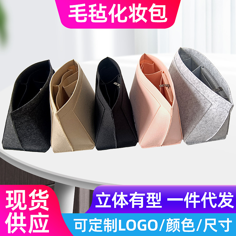 毛毡化妆包 包中包多隔层毛毡内胆大容量收纳包饺子型旅行包