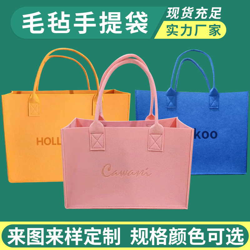 新款毛毡包手提袋可定制logo简约时尚大容量加厚商务广告礼品袋
