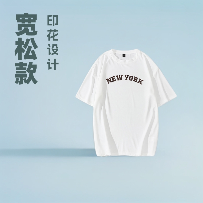 新款休闲风设计感字母印花短袖夏季白色男士字母图案上衣厂家批发