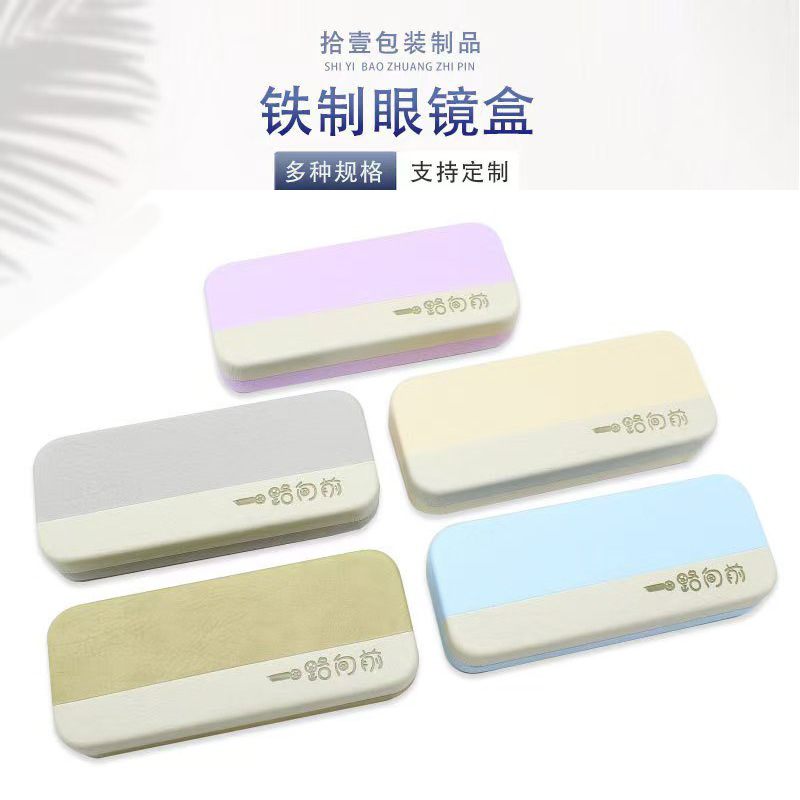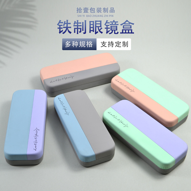 新款高级感小清新时尚百搭近视眼镜盒无缝拼接铁制收纳太阳眼镜盒