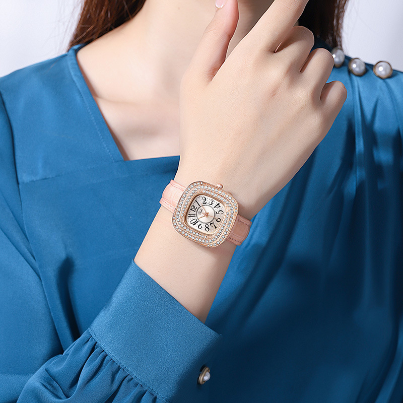 高级感锆石手链女表轻奢小众碎冰冰时尚女士方糖石英手表现货批发