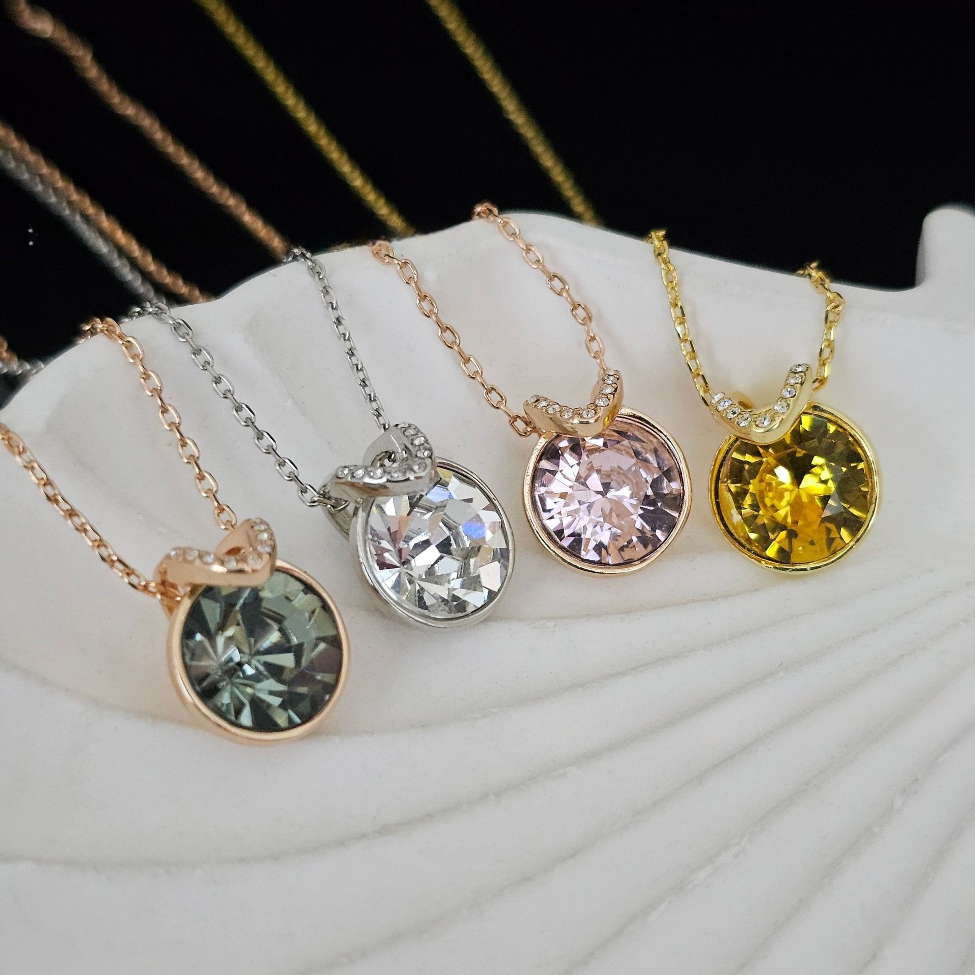 施家高品质多色天鹅项链经典百搭采用施华洛世奇元素水晶锁骨链女