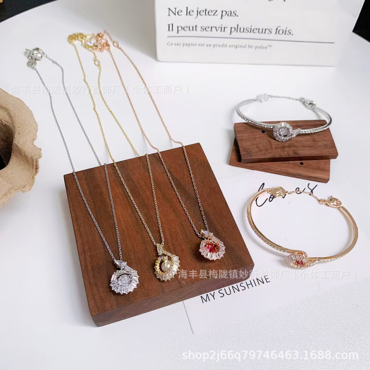 施家幸运三环转动珠项链女采用施家元素水晶锁骨链女厂家一件代发