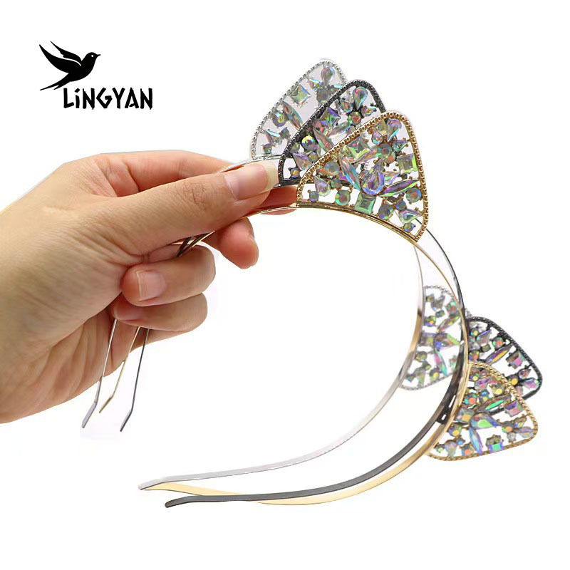 简约高档合金镶钻花猫耳朵发箍成人头带AB彩头箍可爱猫咪发饰