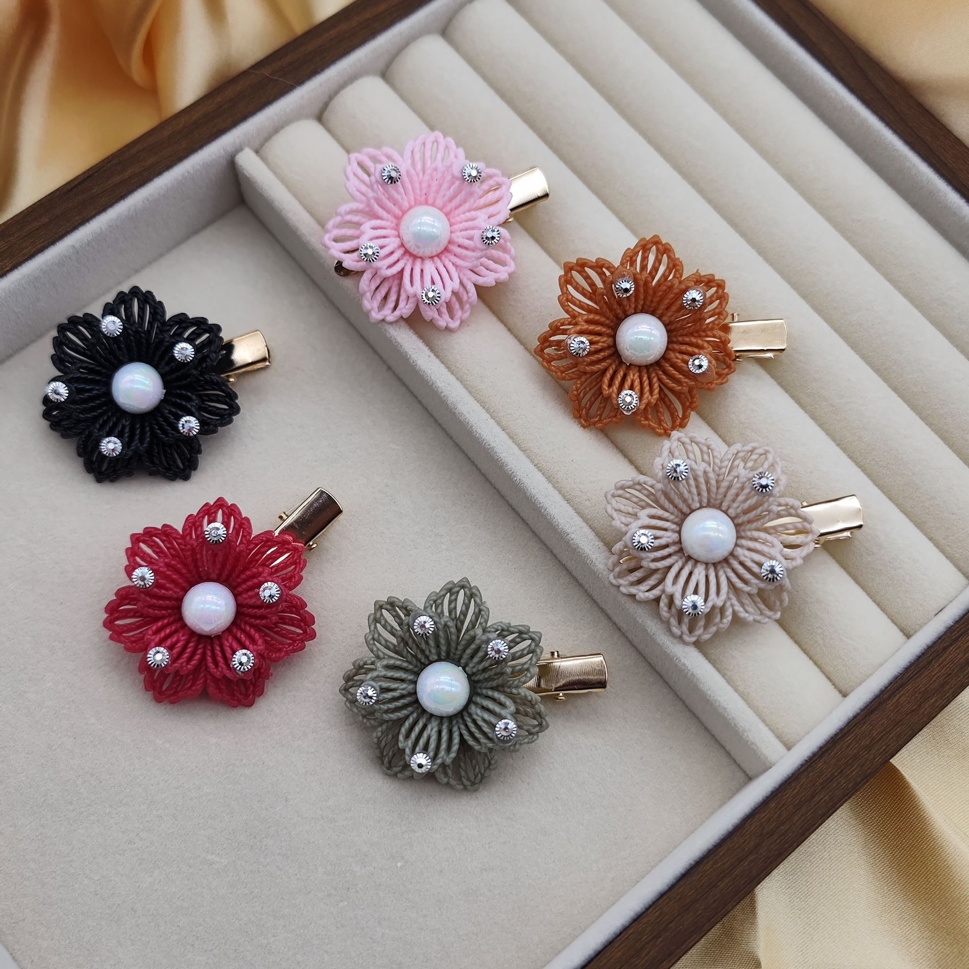 小雏菊花珍珠鸭嘴夹仿真圣诞工艺礼品服装DIY亚马逊畅销发夹批发