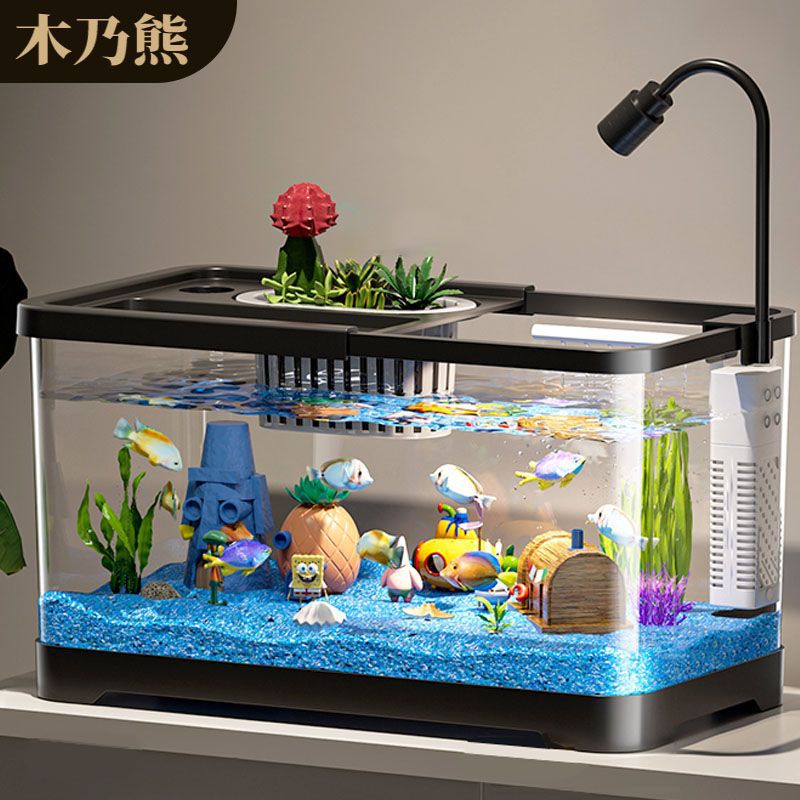 鱼缸水族箱桌面金鱼缸生态造景过滤制氧一体机小型家用带盖造景缸