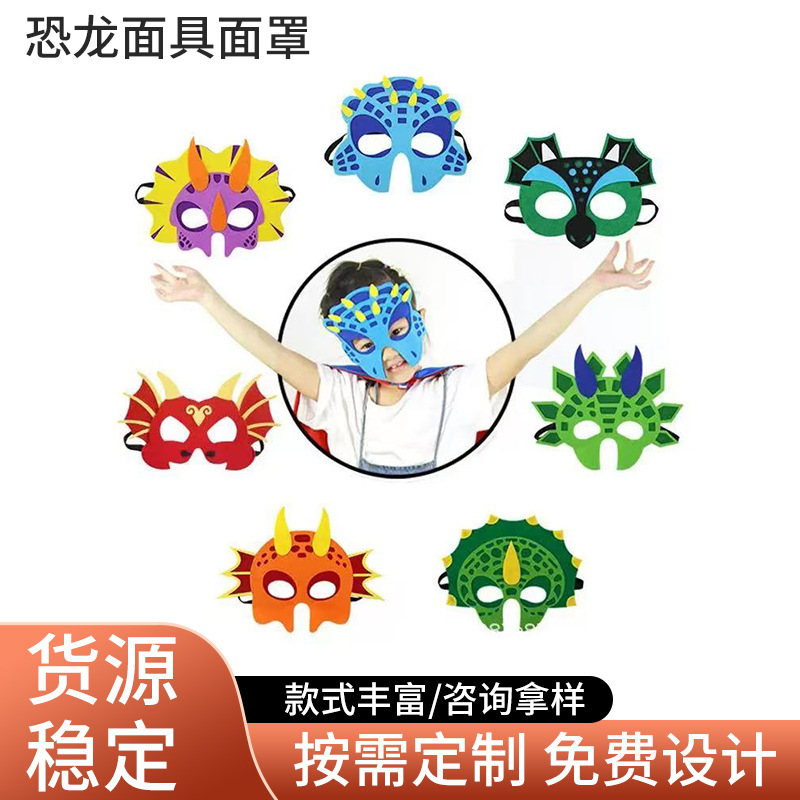 六一儿童恐龙面具霸王龙剑龙翼龙三角龙独角龙眼罩道具万圣节舞台