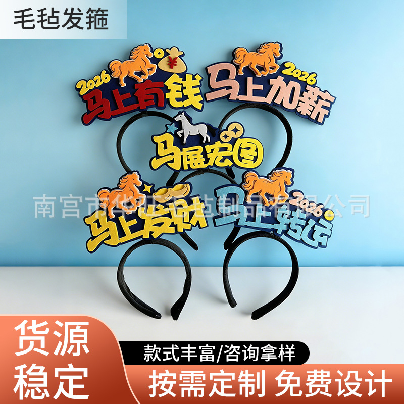 2026年新款马年装饰发箍 diy文字头箍节日应援发饰毛毡发箍发饰