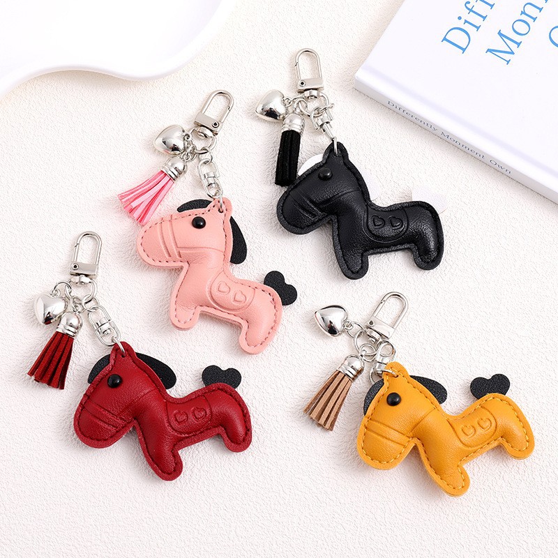马上有钱压印皮革小马爱心包挂配饰手机挂件百搭流苏钥匙扣挂件