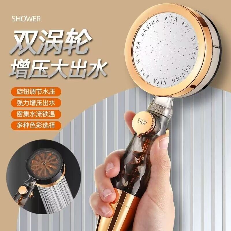 家用手持双涡轮增压淋浴花洒喷头过滤洗澡水沐浴莲蓬头加压淋浴头