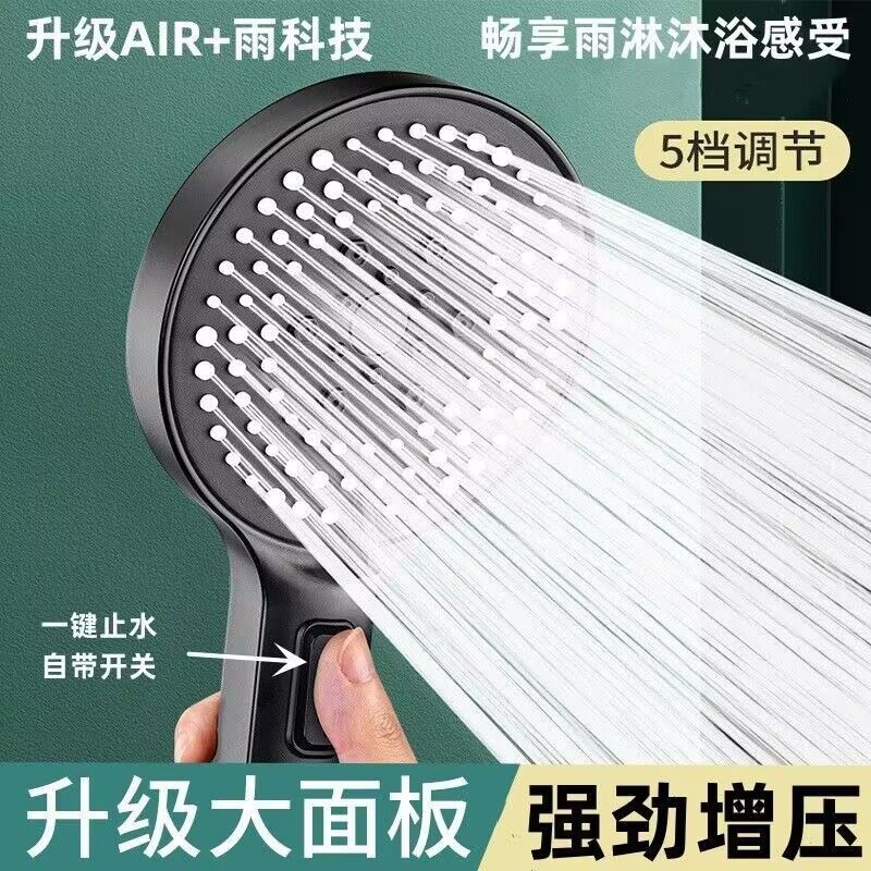 抖音直播代发五档增压花洒头一键止水淋浴手持花洒全喷头花洒套装