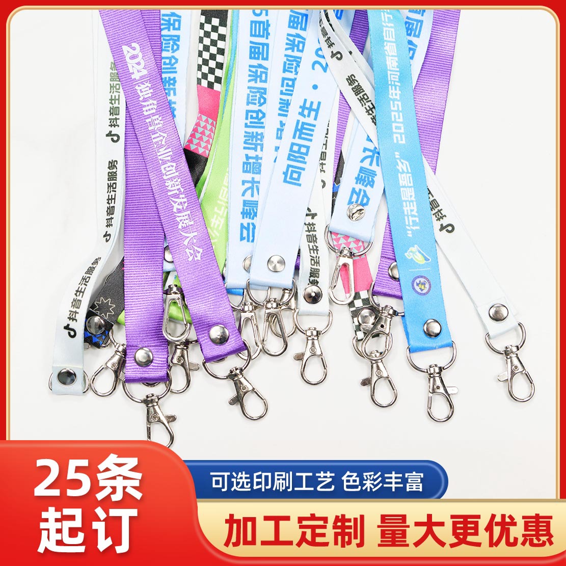 工牌胸牌吊绳可定logo工作证展会会议出入证彩色涤纶工作牌厂家