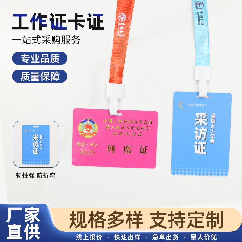 PVC挂牌人像卡工作证双面制作logo图案pvc塑料胸卡展会胸牌厂家