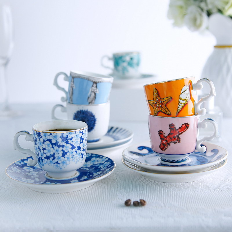 意大利轻奢咖啡杯碟六件套意式浓缩咖啡小号陶瓷杯下午茶花茶杯