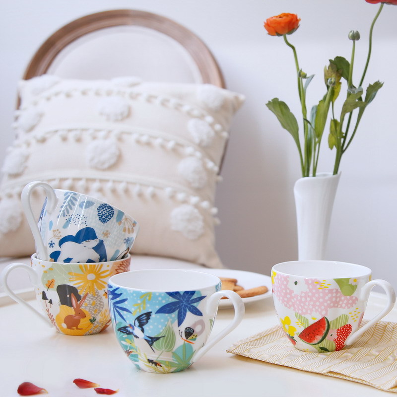 北欧田园风小清新花形陶瓷马克杯四季高骨瓷水杯牛奶咖啡杯四件套