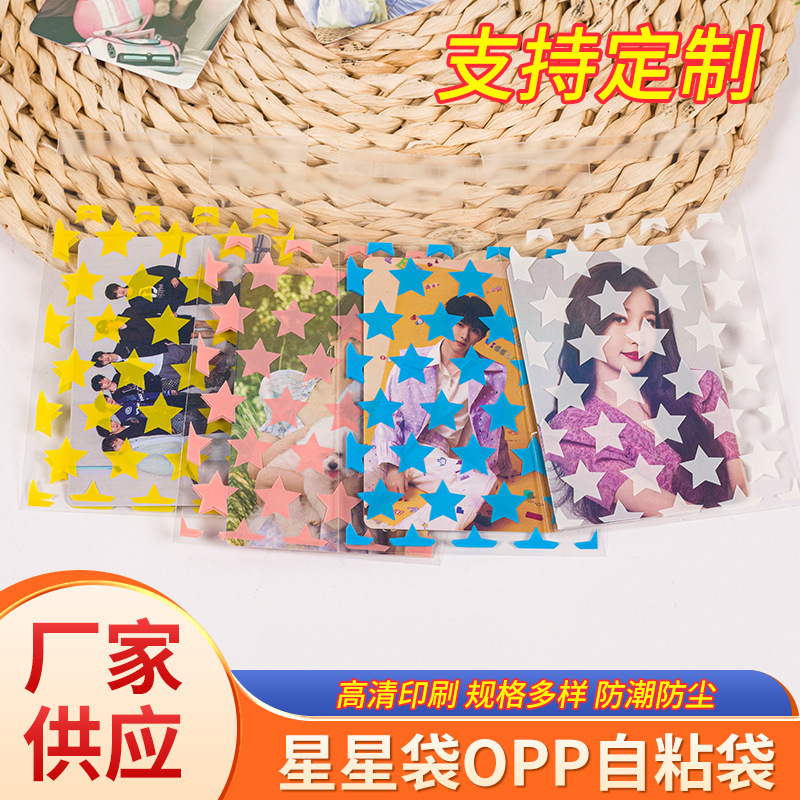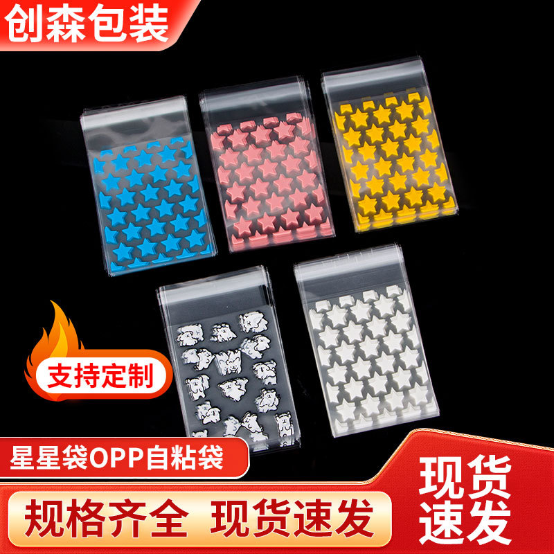 现货星星袋opp自粘袋印花不干胶透明平口袋opp饰品袋自粘袋批发