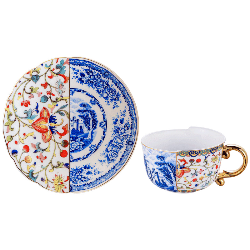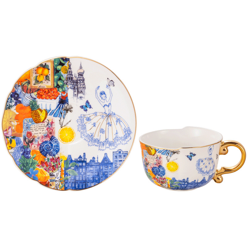 高骨瓷复古轻奢描金把不规则咖啡杯碟梦境芭蕾混搭风格陶瓷杯