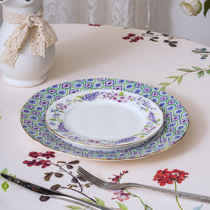 法式轻奢高骨瓷餐具套装田园风丁香花盘子两件套一人食陶瓷盘餐具