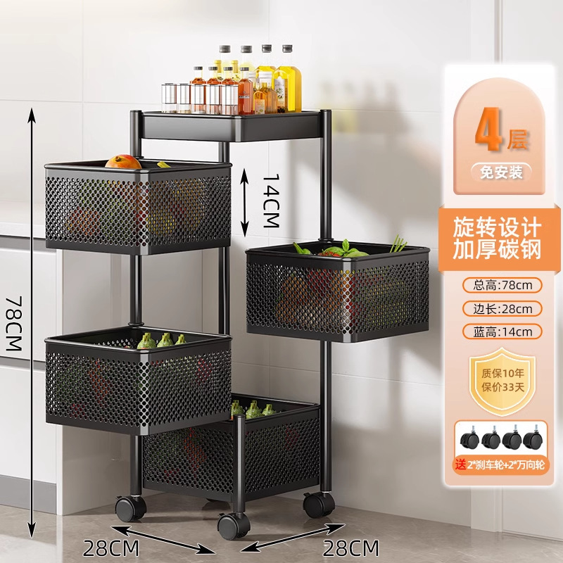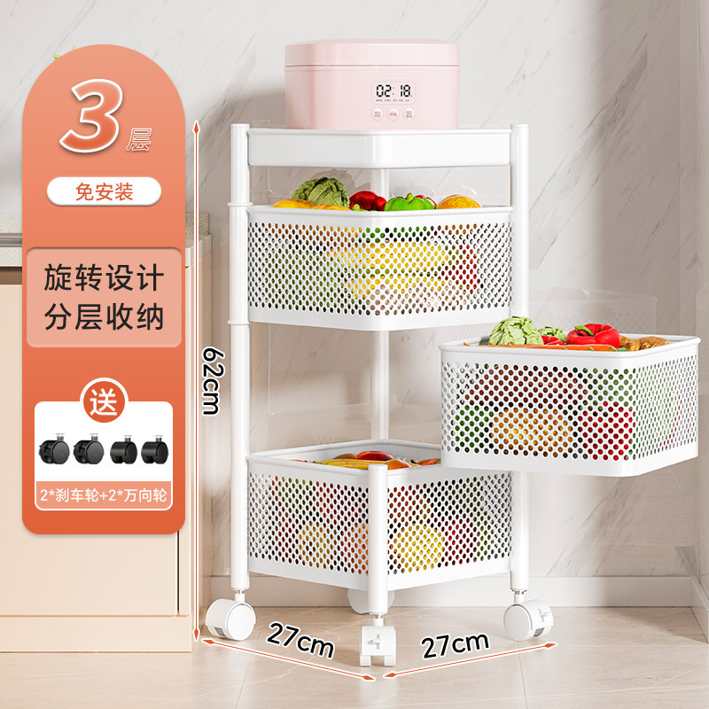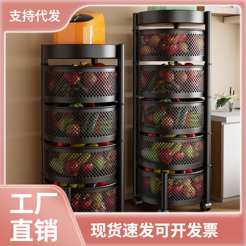多层可移动置物架家用厨房置物架简约可转角落地果蔬收纳架厂家