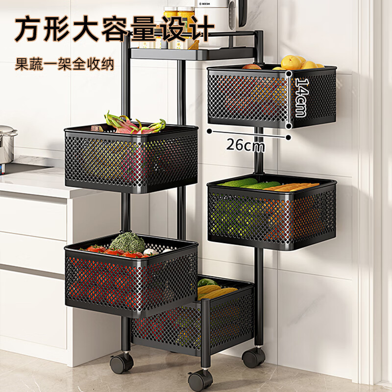 家用落地置物架方形落地可转角收纳架厂家供应可移动果蔬菜篮架