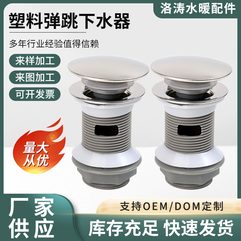 新款加厚弹跳大盖有孔三件套塑料弹跳下水器 手动按压式下水器